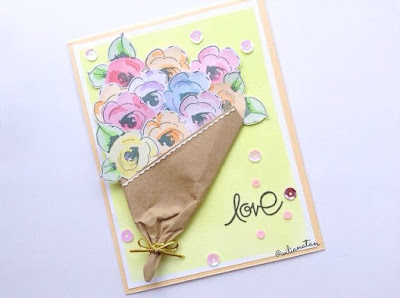 Thanks God, ide muncul begitu liat packaging dari stamp ini, en mikir "kenapa gue ga coba pake watercolor yah?"